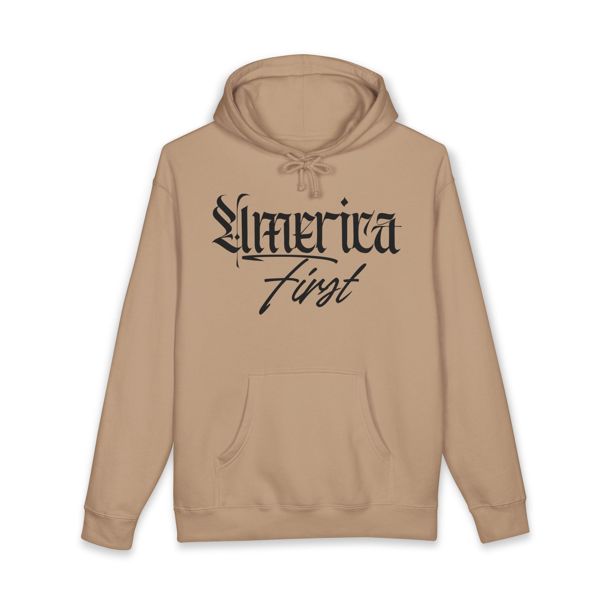 "America First" Heavyweight Hoodie — Patriotic Script Pullover